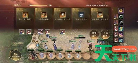 前期留九光寒林棋子,九光寒林前期大多数棋子都为前排,比较依赖召唤物输出,前期优先拿肉装,越多越好。