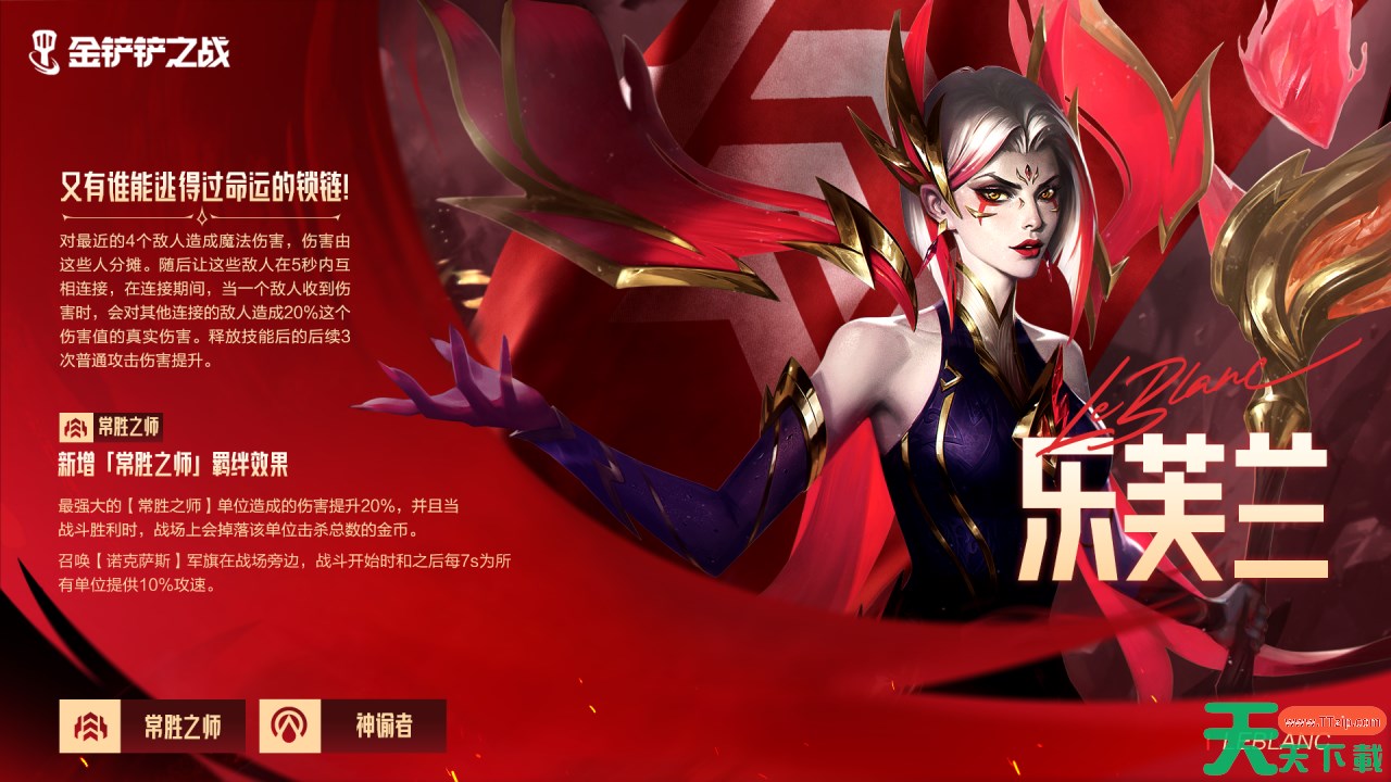 以上就是天天下载(ttzip.com)为大家带来的金铲铲之战乐芙兰技能介绍解答,大家都了解了吗?还想要了解更多的内容那就请继续关注天天下载(ttzip.com)吧。