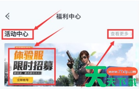 跳转到和平营地,点击底部的资讯 然后点击资讯页面的福利中心 打开福利中心后,找到活动中心——体验服限时招募并点击进入(如果在该页面找到不到,就点击查看更多) 进入页面后,选择立即抢号,最后等待和平精英官方回复,即可 @天天资源网TTzip 除特别注明外,本站所有文章均为 天天下载 原创,转载请注明出处来自 https://www.ttzip.com/200210.html