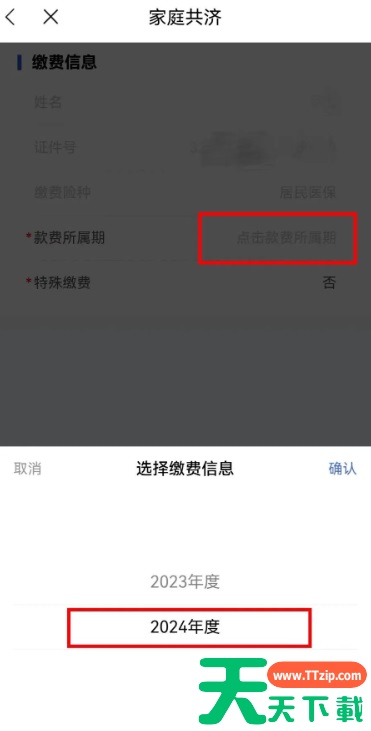2.绑定完成后,在“账户缴费”→“居民医保”,选择需要代缴的家庭成员及费款所属期(2024年度),完成缴费操作。