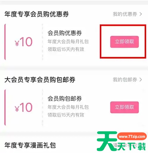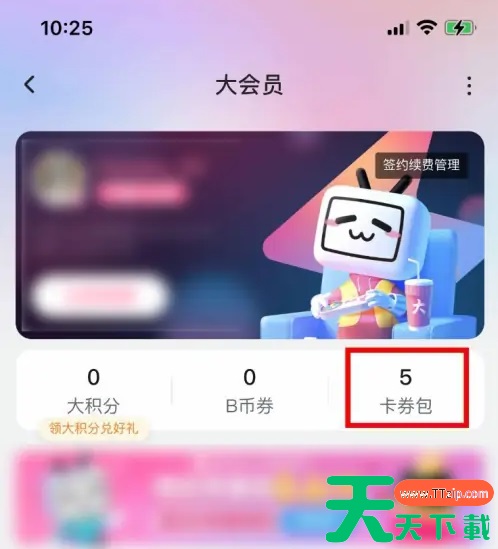 在手机上打开哔哩哔哩,点击个人中心的“大会员”。 在打开的页面中,点击“卡券包”。 在打开的页面中找到“优惠券”,点击“立即领取”即可。 @天天资源网TTzip 除特别注明外,本站所有文章均为 天天下载 原创,转载请注明出处来自 https://www.ttzip.com/200259.html