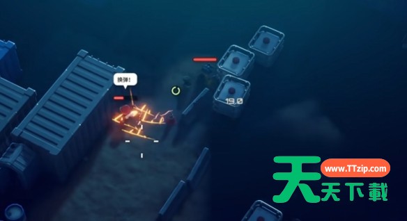 打完子弹它会换弹,注意这时候会冲过来,我们绕到后面去打它。