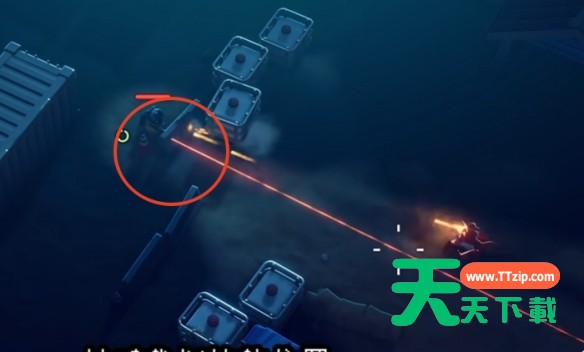 打法:这boss打枪不会停的,所以我们先到下图这个位置先勾引它一枪。
