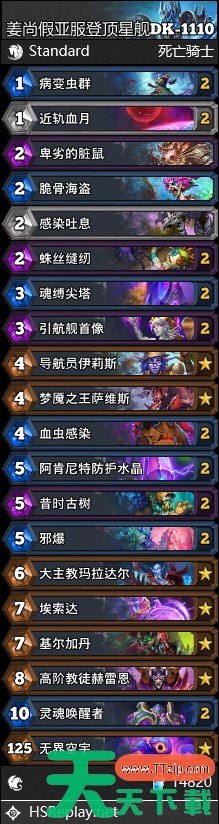 炉石传说穿越时间流版本正式上线,目前已经有不少的玩家用新卡组上分了,那么炉石传说穿越时间流有什么强力的上分卡组呢?相信大家都想了解,下面为大家带来的炉石传说星舰DK卡组内容,感兴趣的玩家们千万不要错过哦! 炉石传说星舰DK卡组11月 星舰DK 姜尚假亚服登顶星舰DK AAECAfHhBArRngaQywb23QbC6Aaq6gbp7QaB/QbDgwfvkweCmAcKuLEGi9wGpdwGnuIG5uUGvugG4eoGloIHl4IHtpQHAAA= 以上就是关于炉石传说星舰DK卡组怎么样的全部内容了,希望能为各位玩家们带来帮助,想要了解更多游戏攻略及资讯请持续关注天天下载(ttzip.com)。 @天天软件站Ttzip 除特别注明外,本站所有文章均为 天天下载 原创,转载请注明出处来自 https://www.ttzip.com/200481.html