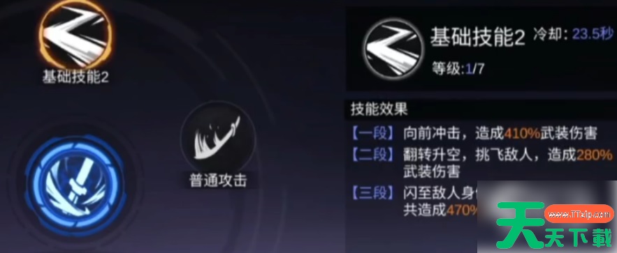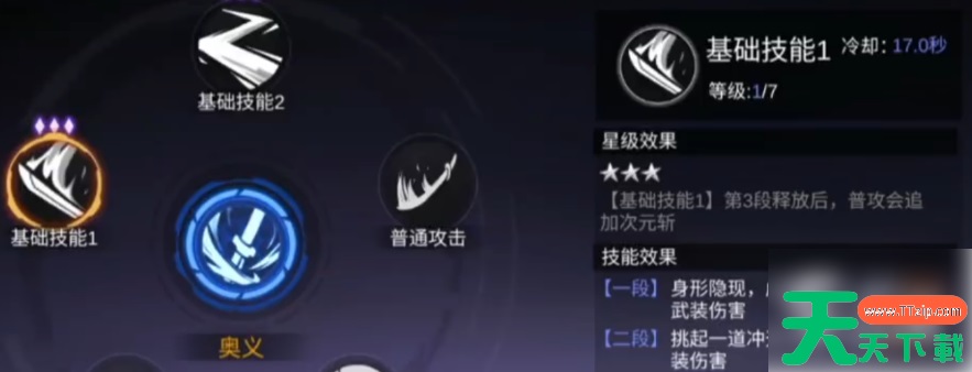 至于普通攻击的话,简单地挥动双刀劈砍前方的敌人。到了最后一次还会释放一次次元斩,对空中虚砍一次。另外还有蓄力斩,只要长按普攻蓄力一击的话就可以释放一道长长的剑气。至于奥义技能的话,便是化身成为多道影子,并连同影子一同快速攻击对方,伤害特别的高。