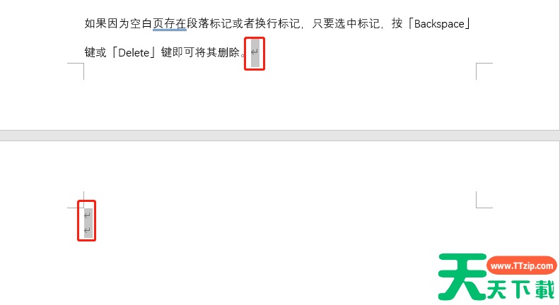 若空白页存在段落标记或者换行标记,只要选中标记,按「Backspace」键或「Delete」键即可将其删除。