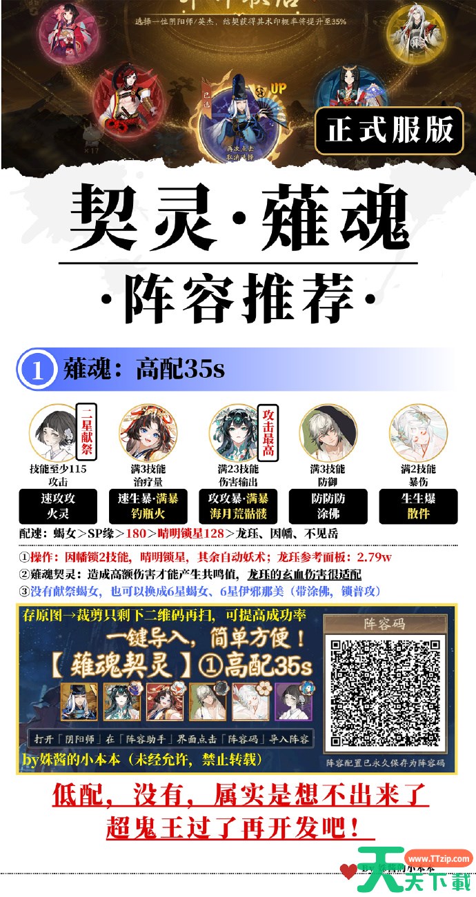 以上就是天天下载(ttzip.com)为大家带来的阴阳师薙魂契灵阵容怎么搭配解答,大家都了解了吗?还想要了解更多的内容那就请继续关注天天下载(ttzip.com)吧。