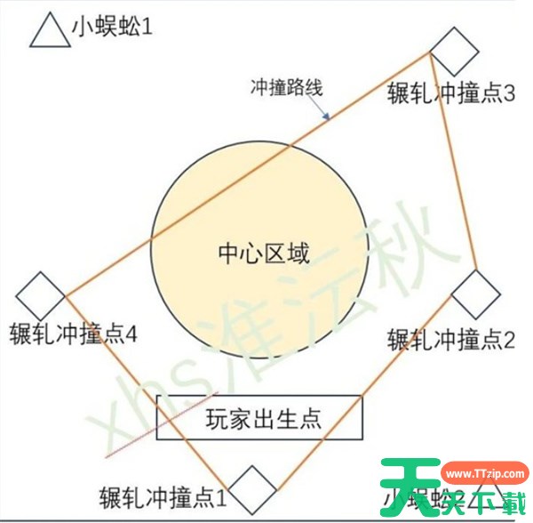 反复辗轧阶段,全员躲避黄条,保证无人受击