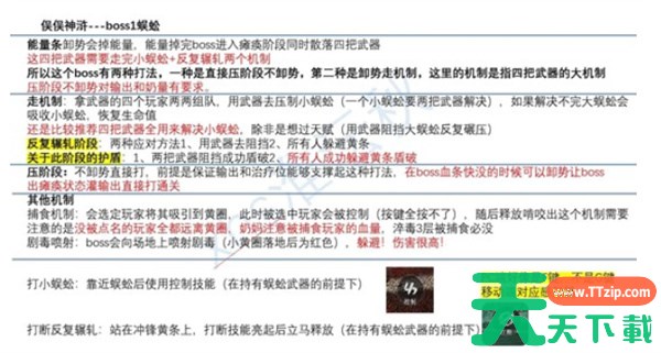 Boss瘫痪阶段时灌输出,四位玩家两两使用武器解决小蜈蚣