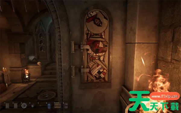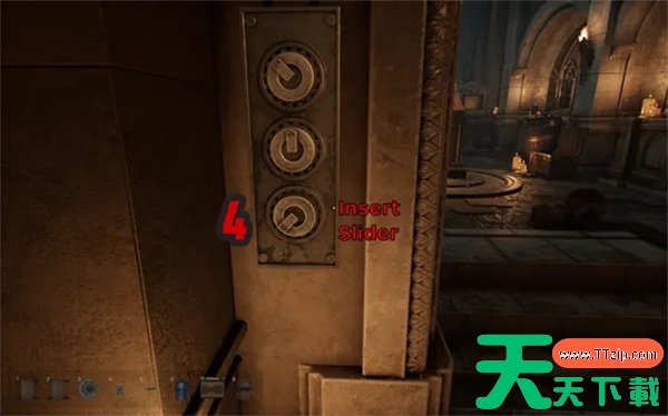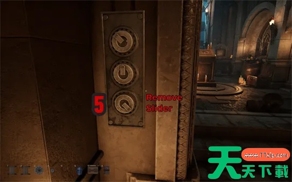 旋转拨盘以校正图像。你需要使用滑块来停止和启动拼图部分的移动以完成解谜。