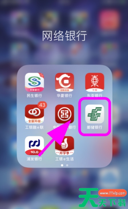 1、首先打开手机,点击【邮储银行】客户端。