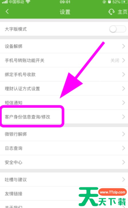 5、进入设置页面,点击【客户身份信息查询修改】按键。