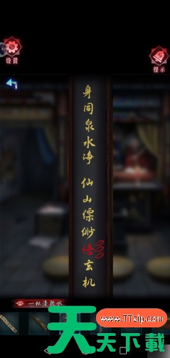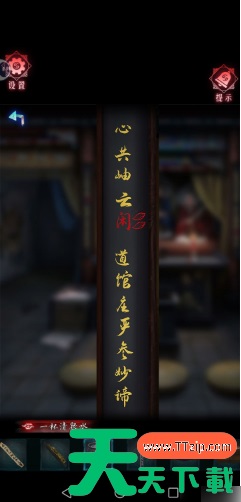 来到殿内,点击仙人,把如意放在右边,把宝珠放在中间,获得纸条2