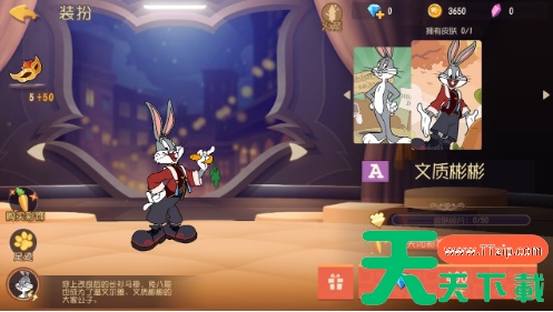 兔八哥的被动才是关键也是他的核心,一级被动兔八哥被命中后将会对目标宣战,获得目标的一个视野,在追击目标时会增加一个移动速度,在宣战期间如果说击倒目标,会获得三层的一个胜利状态,胜利状态能提升生命值上限,最高的话可以叠加到5层,在虚弱后会失去一半层数。二技能没动每隔一段时间可以完美闪避一个投资攻击,闪避成功可以获得一个胜利的状态,这两个被动都要被别人打才会加胜利的状态。三级被动观察老鼠3秒,也就是在我们的一个可视范围之内,推奶酪中一段时间内会大幅度降低一个推奶酪的速度,手持道具时一段时间无法投掷。