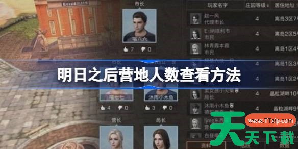 以上就是明日之后营地人数查看方法的全部内容了,希望玩家可以顺利的知道怎么查看,更多精彩内容请关注天天下载(ttzip.com)。
