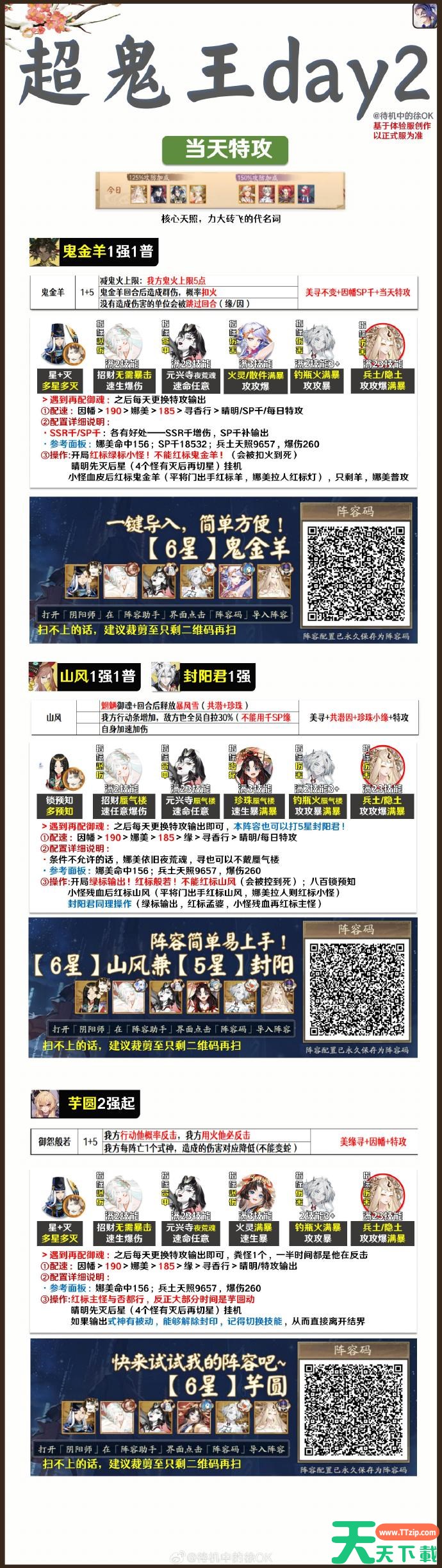 阴阳师超鬼王DAY2阵容推荐已经分享在上面,感兴趣的小伙伴可以参考本篇攻略,希望能为各位玩家们带来帮助,想要了解更多游戏攻略及资讯请持续关注天天下载(ttzip.com)。