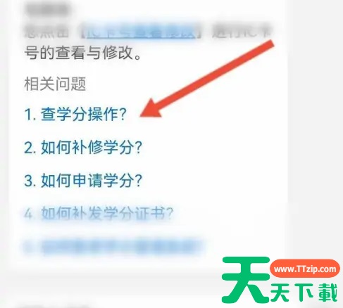 点击我的 进入手机的掌上华医,点击我的选项。 点击在线人工咨询 点击下面的在线人工咨询。 点击查学分操作 输入查学分,点击查学分操作选项。 查看学分查询方式 就可查看到学分查询方式。 @天天资源网TTzip 除特别注明外,本站所有文章均为 天天下载 原创,转载请注明出处来自 https://www.ttzip.com/201048.html