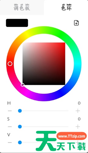 3、绘制完成后,点击下方的“调色板”图标,在弹出的窗口中点击“色环”选项,选择一个喜欢的颜色。