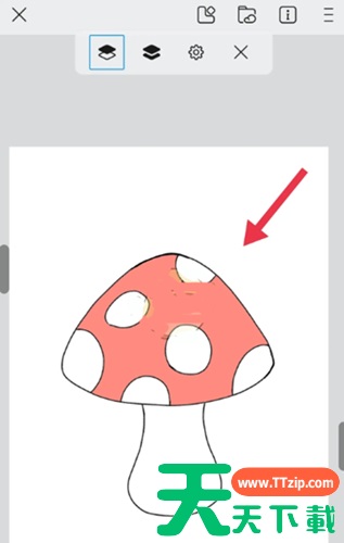 2、在画布中绘制一个蘑菇线稿,天天下载软件站这里绘制的线稿都是封闭的。