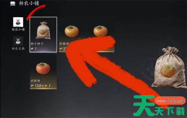4、进入活动页面,打开 柿子农小铺。连续8天购买所有可买的柿子种子并种植到田地。