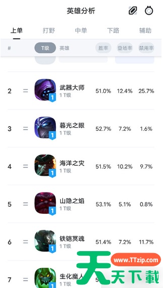 5、进入后,就可以查看到该英雄的登场率和胜率。