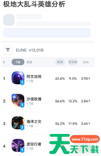 4、选择完成后,界面会自动跳转到极地英雄分析界面,根据自己的喜欢,选择相对应英雄,例如符文法师。