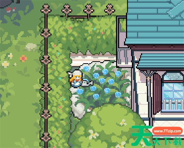 爱丽丝家左侧蓝色花圃旁有只浇花的人偶,点击人偶它会给花浇水。
