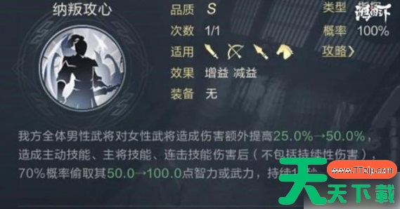 备选技能:纳叛攻心(针对女将)磐石、却敌、治疗类等。