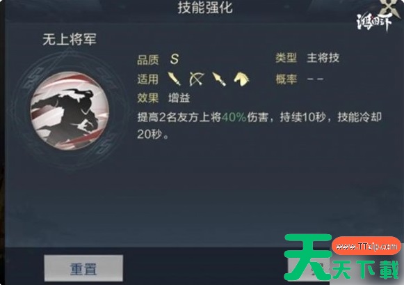 武力成长1.00 提升主动技能普攻和连击技能伤害(输出)