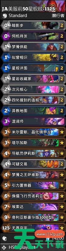 炉石传说穿越时间流版本已经上线一两周了,那么本周标准天梯都有哪些强力的上分卡组呢?相信大家都想了解,下面为大家带来的炉石传说标准星舰贼卡组内容,感兴趣的玩家们千万不要错过哦! 炉石传说标准星舰贼卡组11月 标准星舰贼 JA美服前50星舰贼,战绩是23胜9负 AAECAaIHCsekBoa/BvbdBu3nBqrqBrXqBuHrBsODB4KYB9GdBwr2nwT3nwS2tQac3Aae3Abq5Qaa5gaQgwfBlwfHrgcAAQP1swbHpAb3swbHpAbu3gbHpAYAAA== 以上就是关于炉石传说标准星舰贼卡组怎么样的全部内容了,希望能为各位玩家们带来帮助,想要了解更多游戏攻略及资讯请持续关注天天下载(ttzip.com)。 @天天软件站Ttzip 除特别注明外,本站所有文章均为 天天下载 原创,转载请注明出处来自 https://www.ttzip.com/201289.html