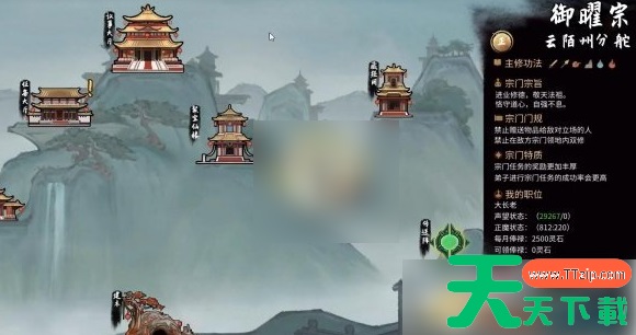 1、先来到自己当前的宗门点进去然后找到右边的宗门详情;