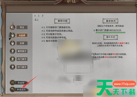 宗门-职位晋升-申请退宗
