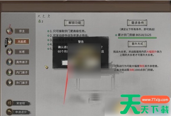 4、玩家退出后60个月内不可重新加入此宗门并清空宗门贡献。