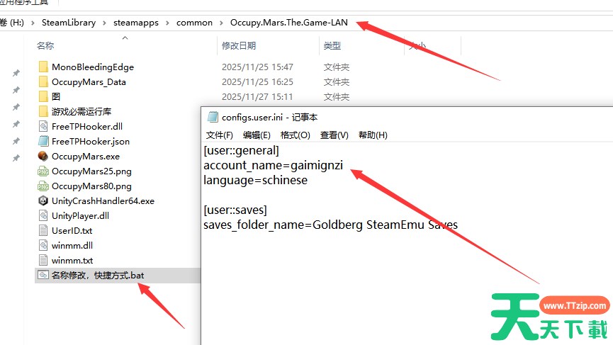 双击打开游戏目录下的“名称修改,快捷方式.bat”,找到“account_name=gaimingzi”,把“gaimingzi”改成自己想要的名字,保存。
