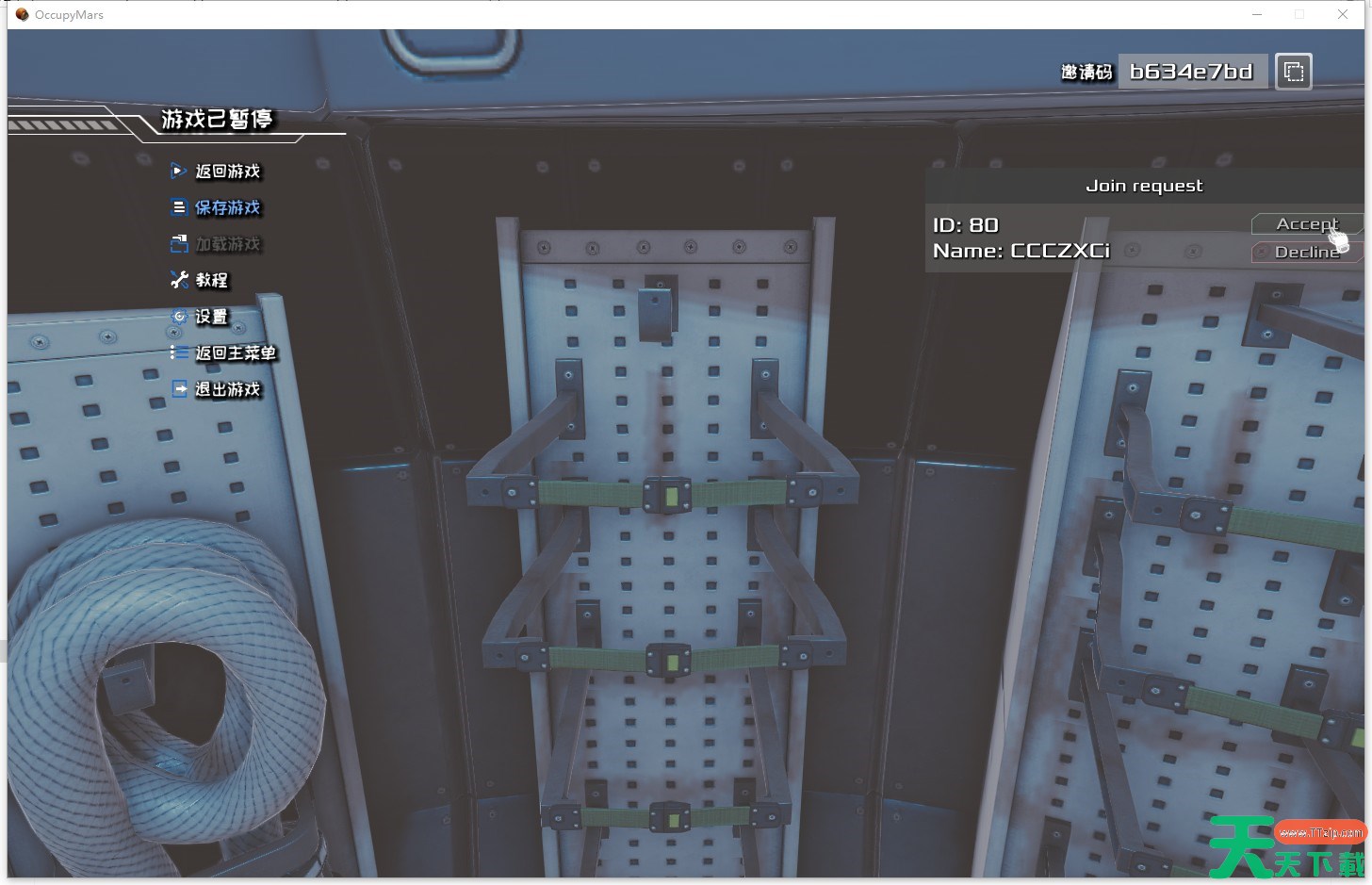 如果一边玩一边等玩家加入的话,需要游戏中按Esc键呼出界面,在加入申请中点Accept同意玩家加入,等待加入完成。