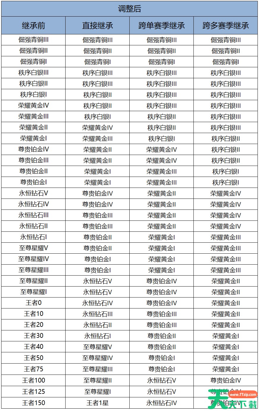 以上就是王者荣耀s42新赛季段位继承规则的全部内容了,希望对各位玩家朋友们有所帮助,更多精彩游戏攻略和相关资讯请关注天天下载(ttzip.com)。