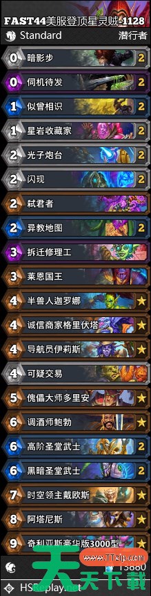 炉石传说穿越时间流版本已经上线有一段时间了,那么本周标准天梯都有哪些强力的上分卡组呢?相信大家都想了解,下面为大家带来的炉石传说标准星灵贼卡组内容,感兴趣的玩家们千万不要错过哦! 炉石传说标准星灵贼卡组11月 标准星灵贼 FAST44美服登顶星灵贼 AAECAaIHDMekBra1BrHBBqfTBpP0BoOKB9uXB4KYB4aoB4eoB4ioB5mxBwn2nwT3nwTq5QaN9AaQ9Aao9AbL+AbBlwfHrgcAAQP1swbHpAb3swbHpAbu3gbHpAYAAA== 以上就是关于炉石传说标准星灵贼卡组怎么样的全部内容了,希望能为各位玩家们带来帮助,想要了解更多游戏攻略及资讯请持续关注天天下载(ttzip.com)。 @天天软件站Ttzip 除特别注明外,本站所有文章均为 天天下载 原创,转载请注明出处来自 https://www.ttzip.com/201497.html