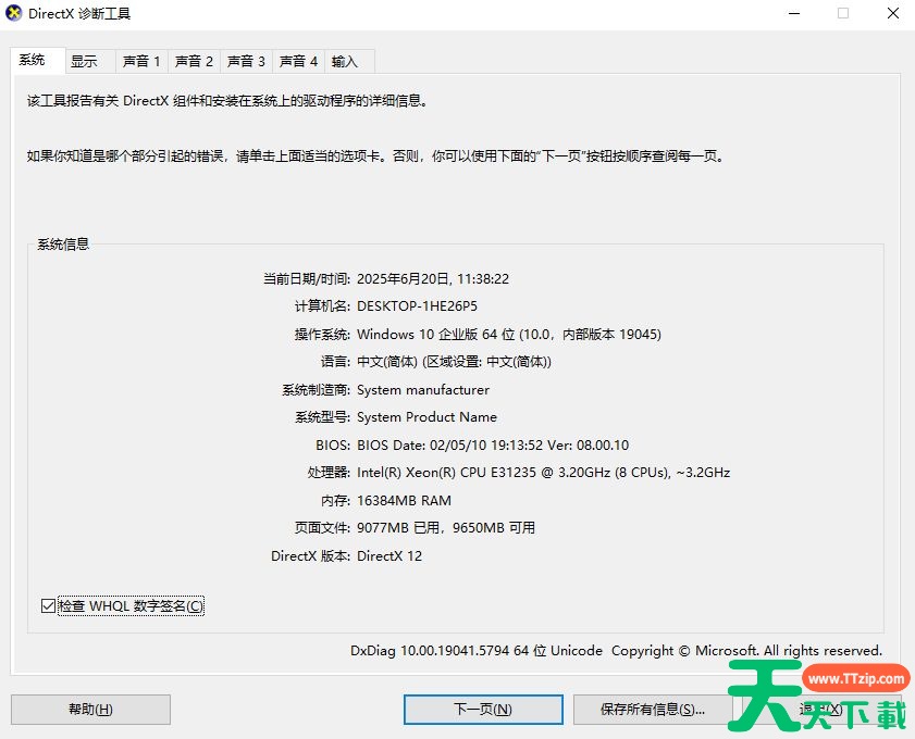 系统会生成一个包含 DirectX 信息的文本文件(如dxdiag.txt),您可以通过该文件查看详细信息。