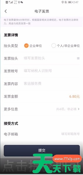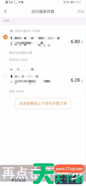 1、打开T3出行app,随后点击左上方的头像; 2、点击头像下方的行程,再点击要开发票的订单; 3、进入订单详情后,点击司机头像下方的开发票; 4、随后点击出行服务开票,勾选订单,再点击下一步; 5、最后填写指定信息,点击提交即可。 @天天资源网TTzip 除特别注明外,本站所有文章均为 天天下载 原创,转载请注明出处来自 https://www.ttzip.com/201506.html