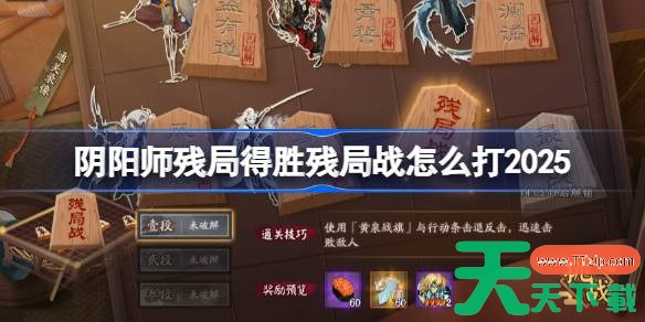 阴阳师残局得胜残局战怎么打2025已经分享在上面,感兴趣的小伙伴可以参考本篇攻略,希望能为各位玩家们带来帮助,想要了解更多游戏攻略及资讯请持续关注天天下载(ttzip.com)。