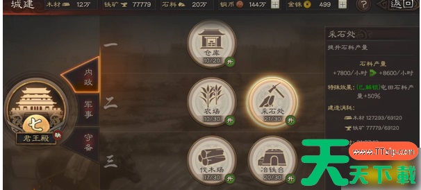 三国志战略版开荒爆仓升七本的意义非凡,建造兵营才是重要的发展道路,有助于后面的各种升级,通过主要任务资源爆仓,节省升级仓库的资源,从而达到快速升级7本的目的,1个士兵等于10木材,10铁和20食物,翻车一次就会导致7本进度推后几小时。