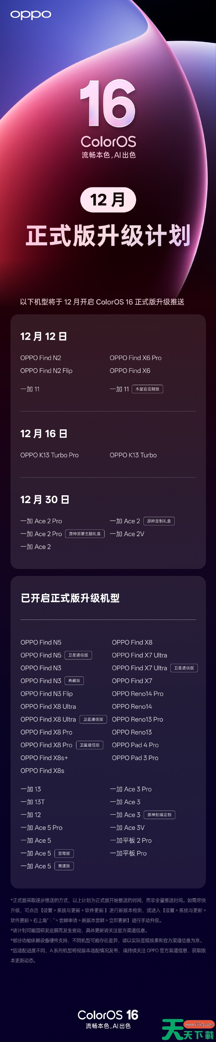 以上就是天天下载(ttzip.com)为大家带来的ColorOS16升级机型解答,大家都了解了吗?还想要了解更多的内容那就请继续关注天天下载(ttzip.com)吧。