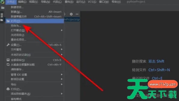启动 PyCharm,点击菜单栏的 【文件】(File) → 【打开】(Open)。