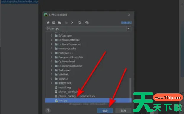 在弹出的窗口中选择你的 .py 文件,点击 确定(或直接双击文件)。
