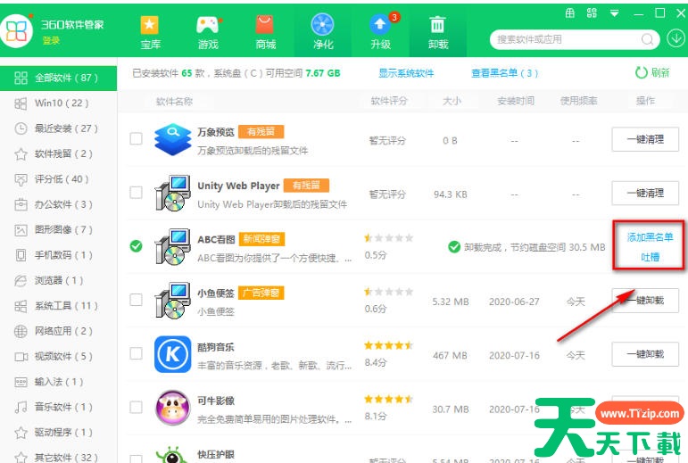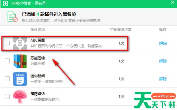 以上就是天天下载Ttzip为您整理的360软件管家怎么把软件拉入黑名单以及360软件管家把软件拉入黑名单的方法啦,希望能帮到您!