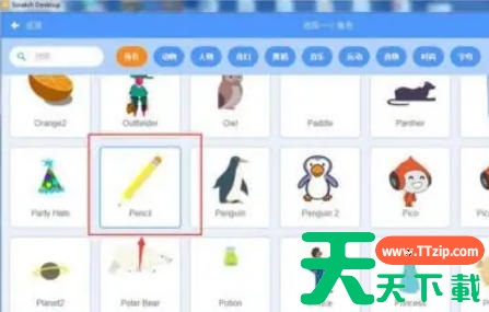在角色库中搜索 「Pencil」,选择铅笔图标并添加到项目中。