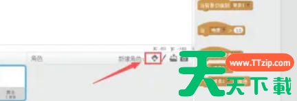 打开scratch编辑界面,点击「新建角色」右侧的图标(如从本地文件上传、随机选择或绘制新角色),插入一个角色。