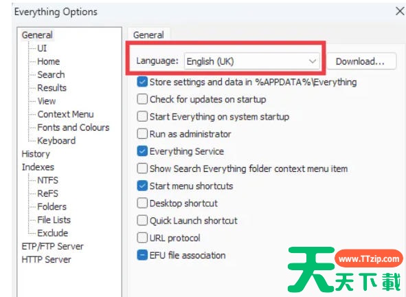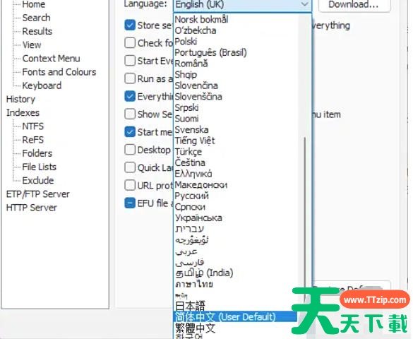 以上就是天天下载Ttzip为您整理的EveryThing怎么设置成中文以及EveryThing设置成中文的方法啦,希望能帮到您!