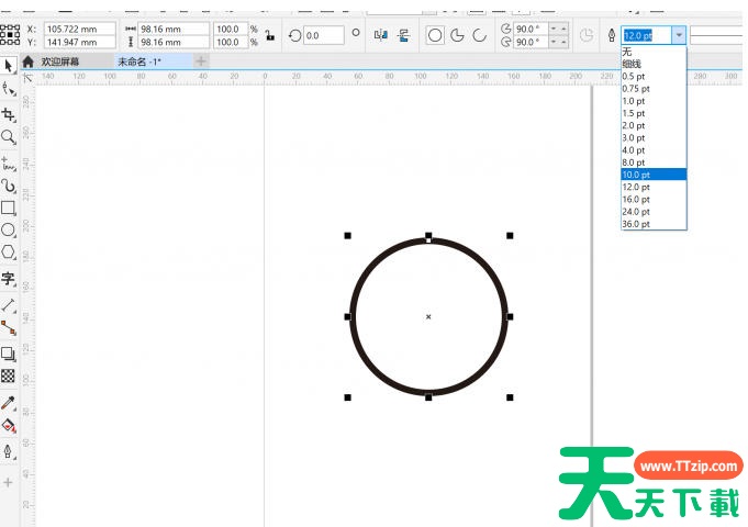 在属性栏中调粗圆的轮廓线(如设置为2pt),便于后续观察路径效果。