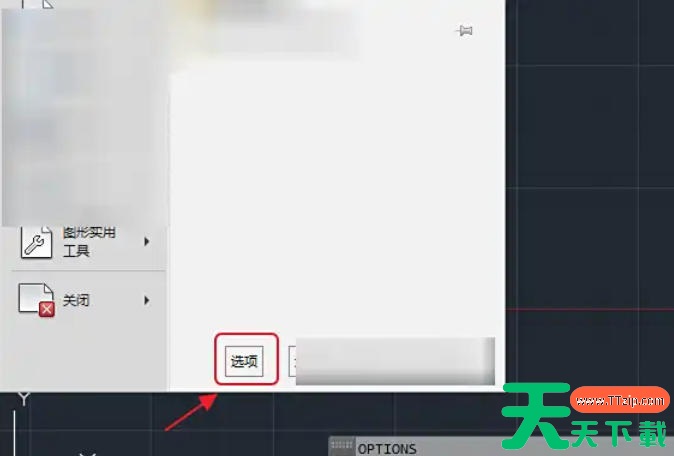 点击软件左上角的 红色“A”图标(autocad标志)。在展开的菜单中,选择底部 【选项】(或直接输入快捷键 OP 回车)。